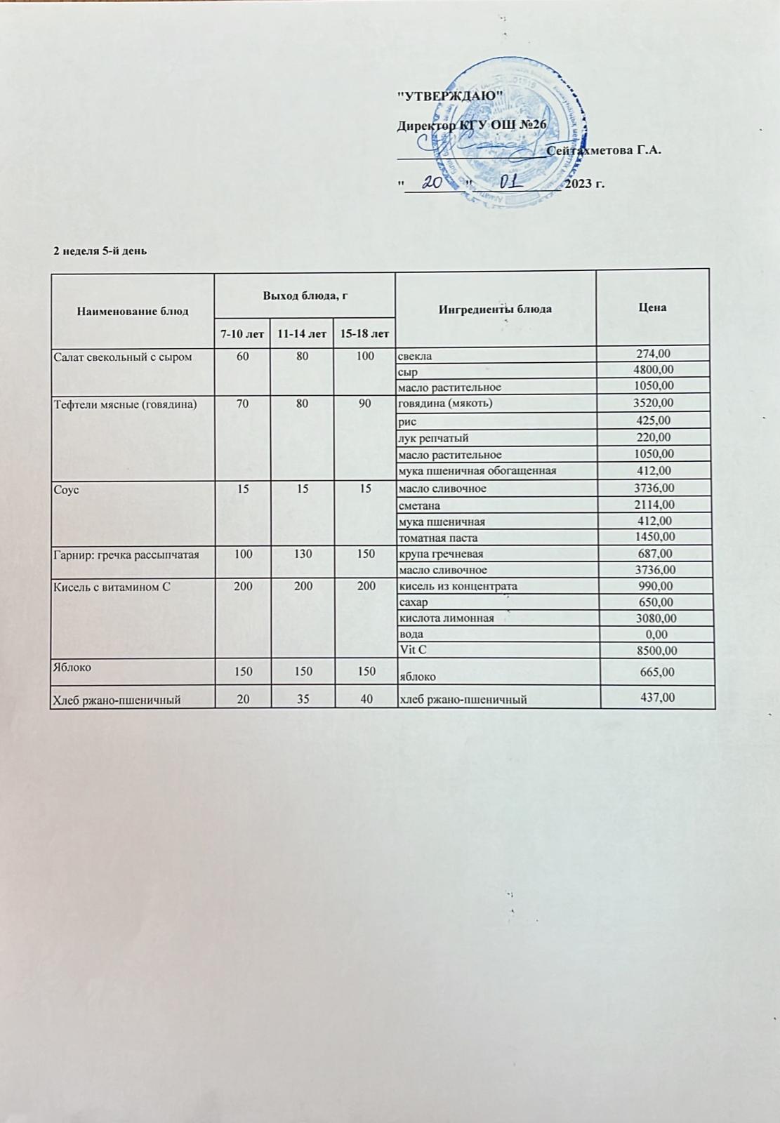 Төрт апталық ас мәзірінің ІІ-аптасының 5-күні (20.01.2023)