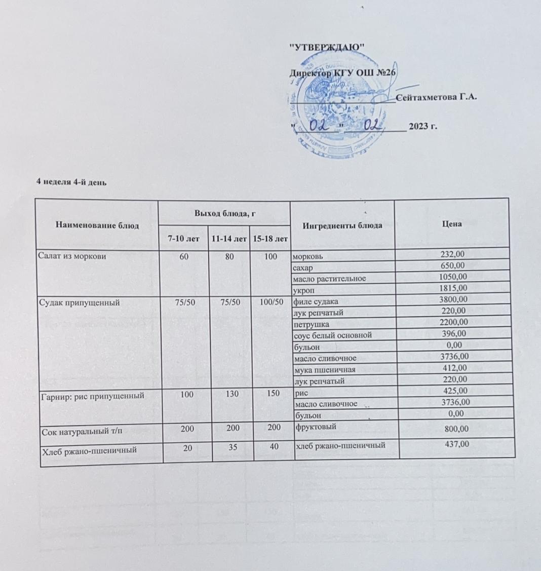 » Төрт апталық ас мәзірінің ІV-аптасының 4-күні (02.02.2023)