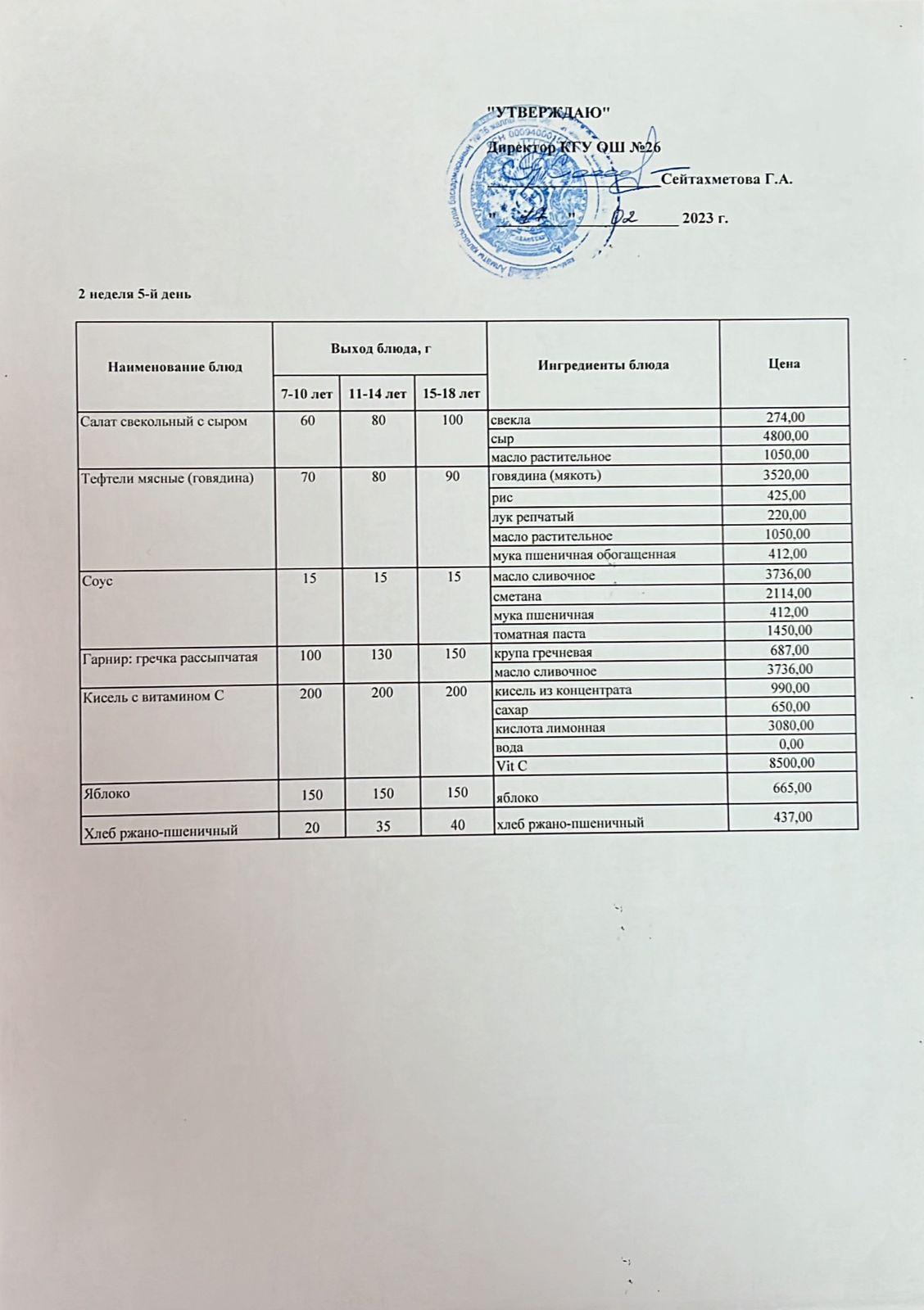 Төрт апталық ас мәзірінің ІІ-аптасының 5-күні (17.02.2023)