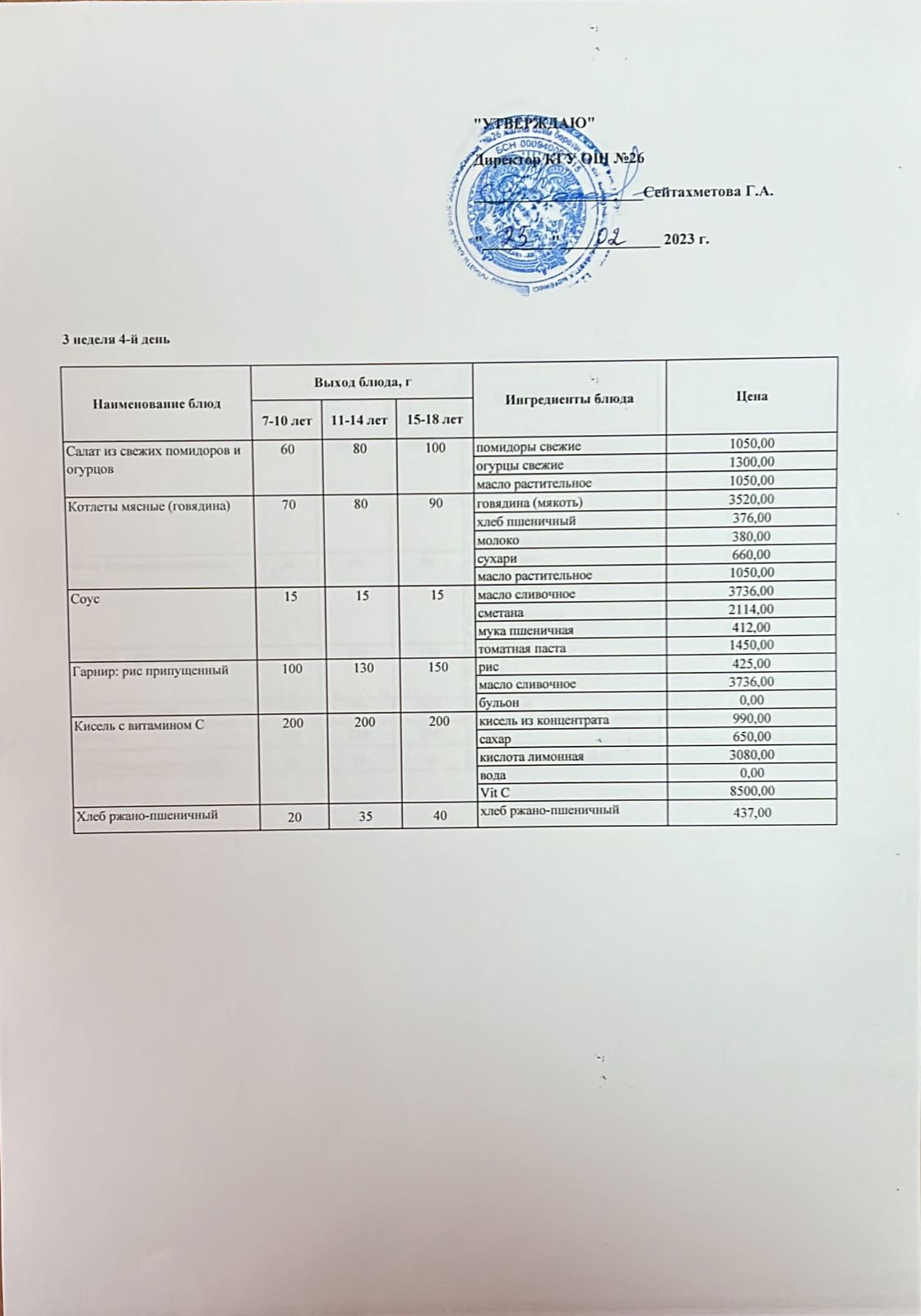 » Төрт апталық ас мәзірінің ІІІ-аптасының 4-күні (23.02.2023)