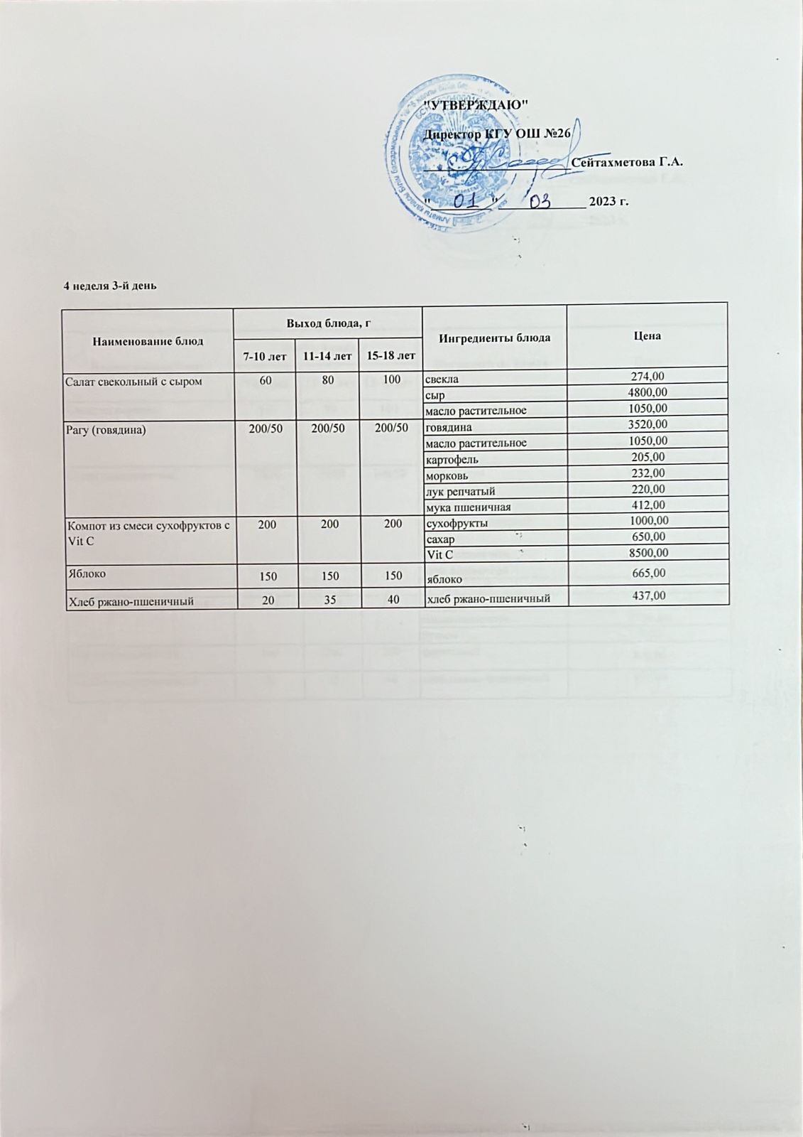 Төрт апталық ас мәзірінің ІІІ-аптасының 4-күні (26.01.2023)