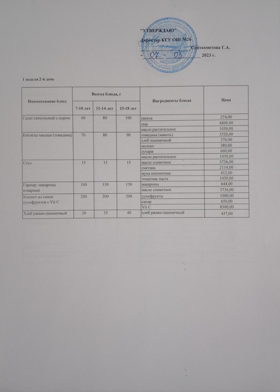 Төрт апталық ас мәзірінің І-аптасының 2-күні (07.03.2023)