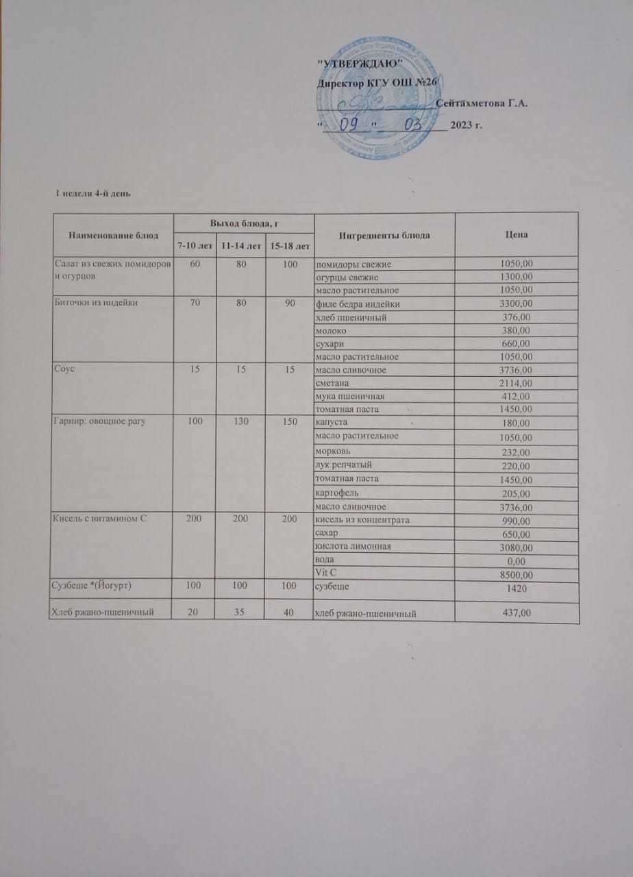 Төрт апталық ас мәзірінің І-аптасының 4-күні (09.03.2023)