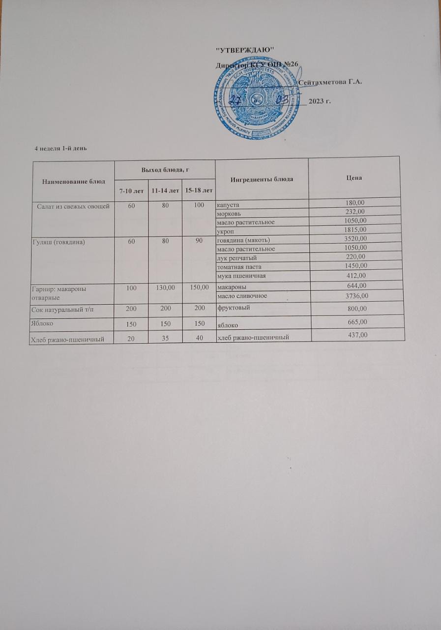 » Төрт апталық ас мәзірінің ІV-аптасының 1-күні (27.03.2023)