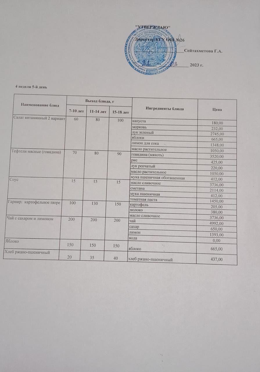 Төрт апталық ас мәзірінің IV аптасының 5-күні (26.05.2023)