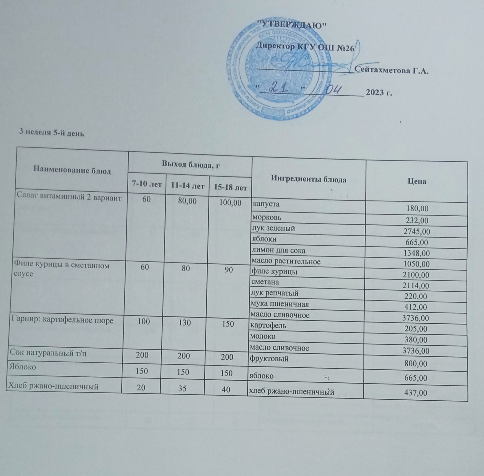 » Төрт апталық ас мәзірінің III-аптасының 5-күні (21.04.2023)