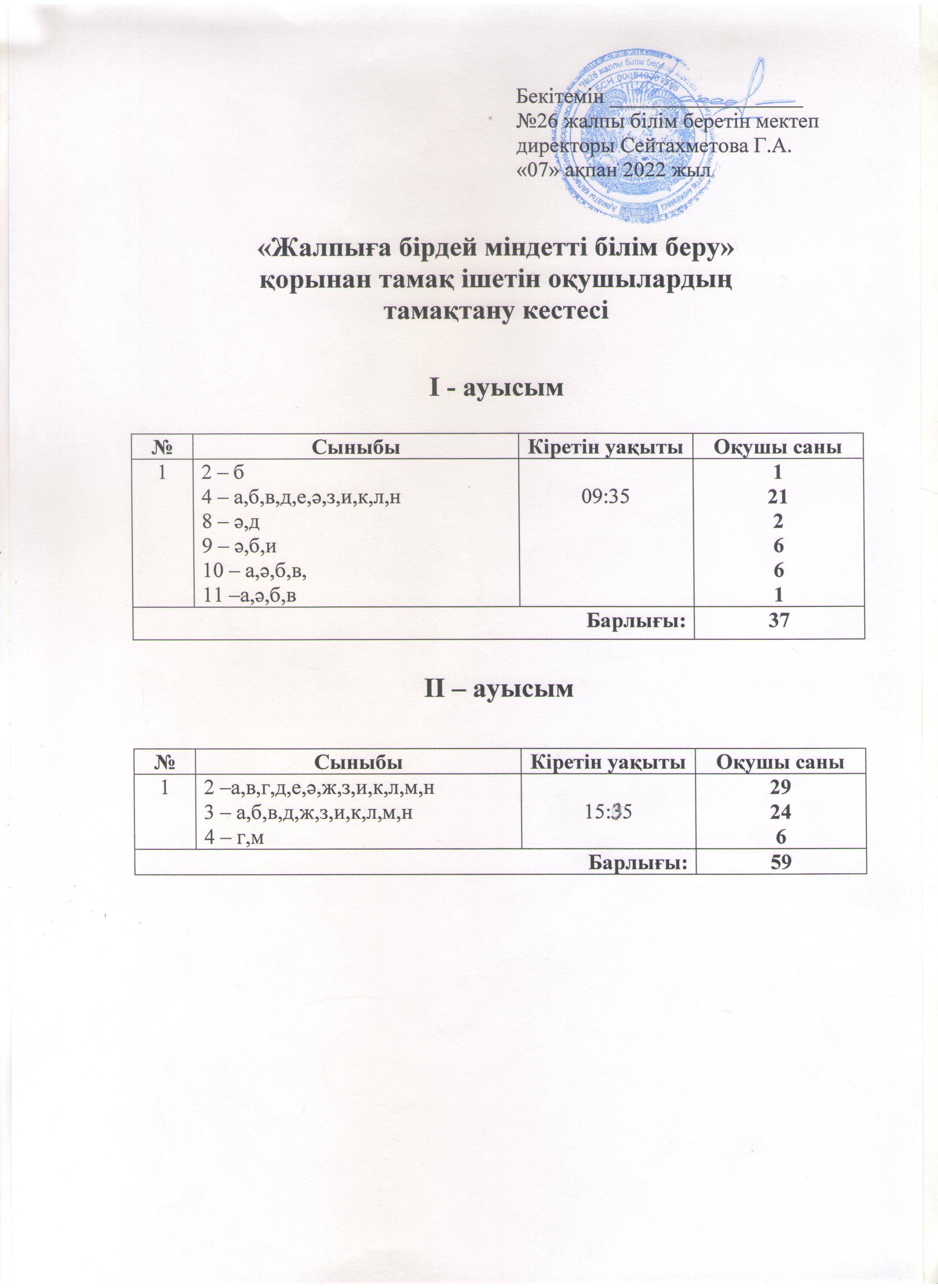 » Тамақтану кестесі 2021-2022 оқу жылы