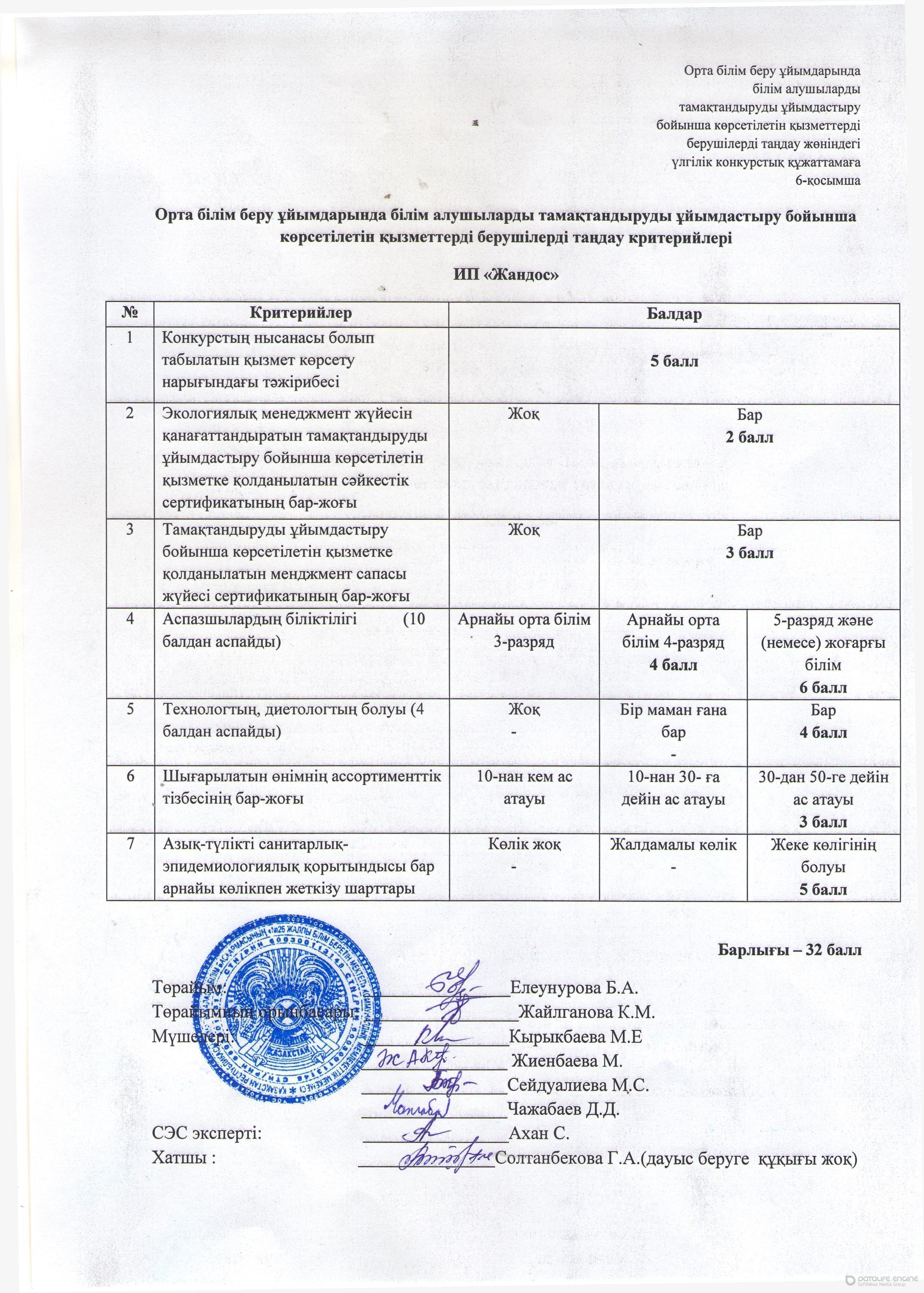 Тамақтандандыру Шарттары