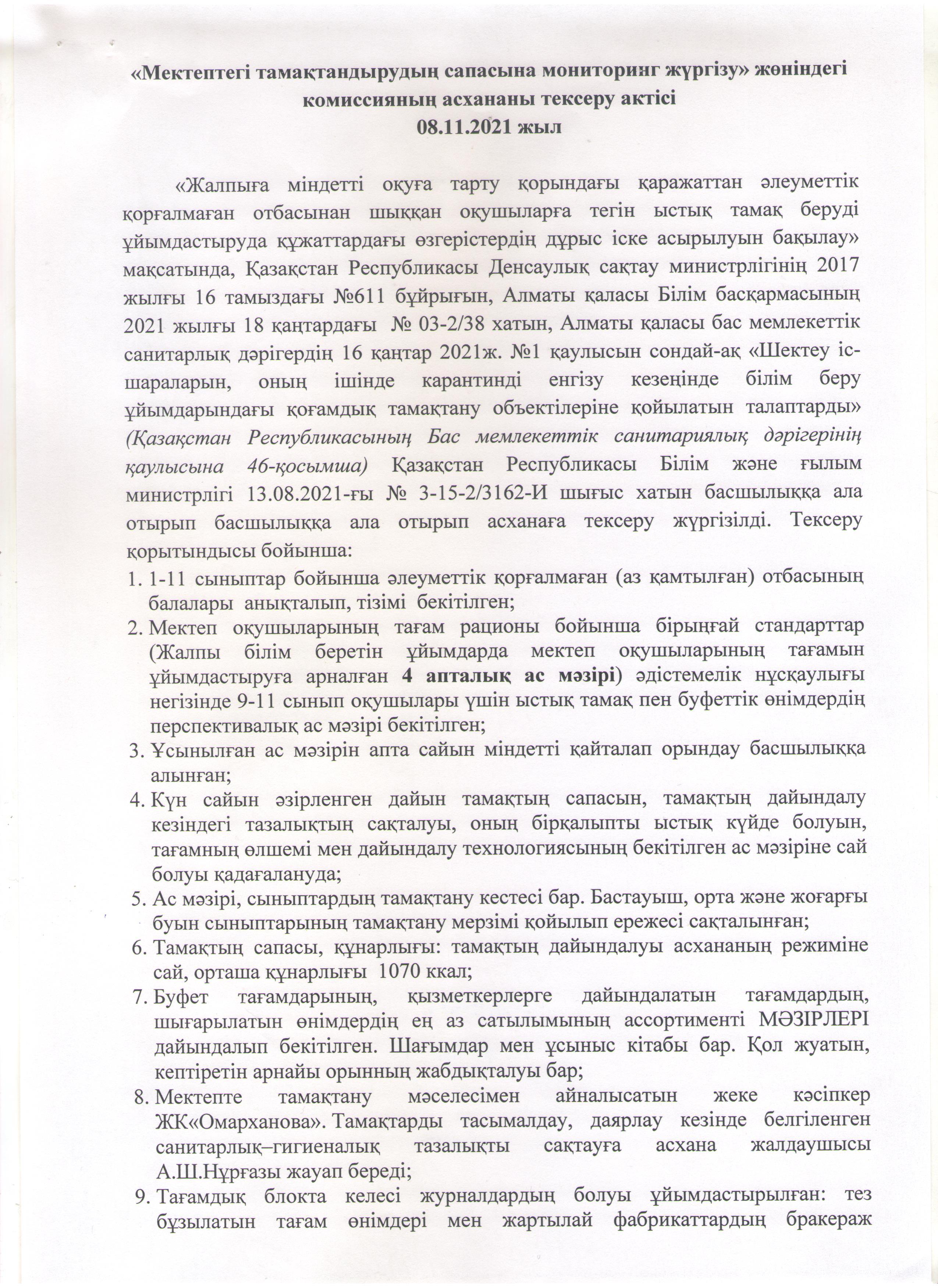 Мониторинг жүргізу жөніндегі комиссияның айлық есебі. 2021-2022 оқу жылы