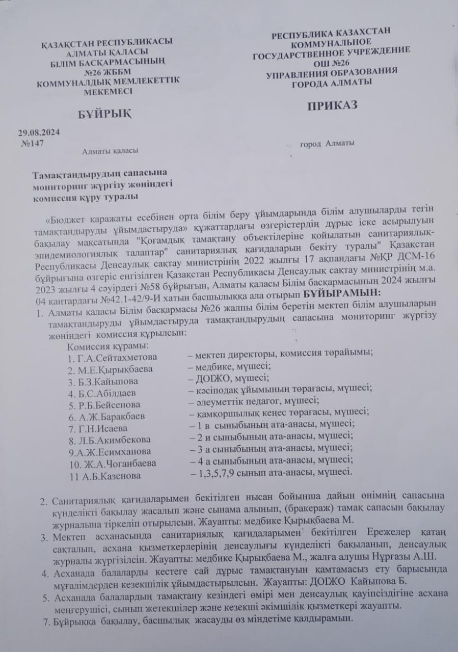 29 август 2024 0 1 2 3 4 5 Тамақтану сапасына мониторинг жүргізу комиссиясының бұйрығы 2024-2025 оқу жылы