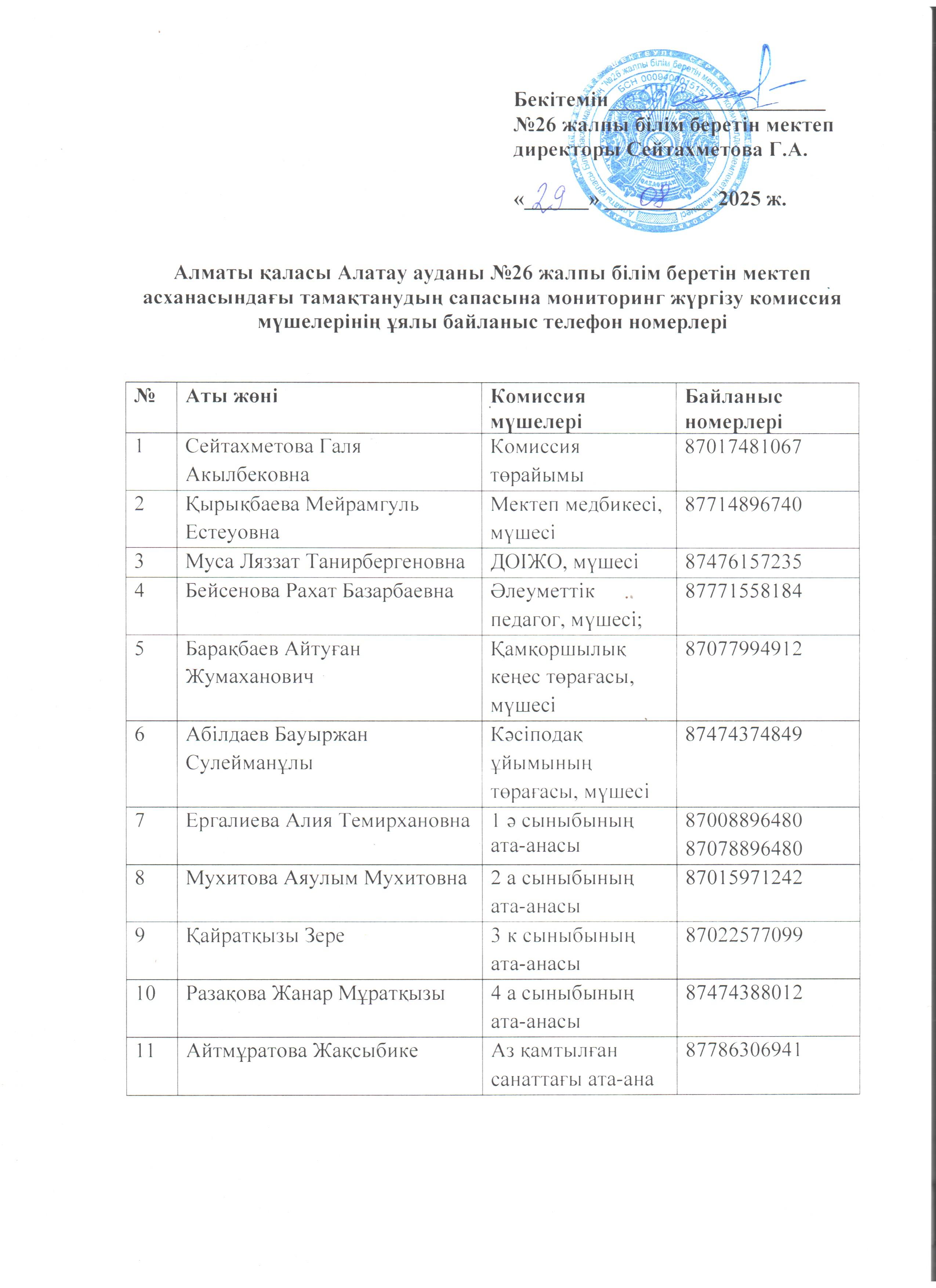 Бракераж комиссия мүшелері туралы ақпарат, 2025-2026 оқу жылы.